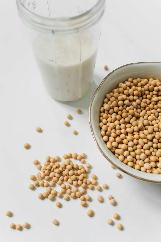 Соевото мляко е друг вариант за производство на колаген за хора, които не консумират млечни продукти. Соята осигурява пълноценен протеин и съдържа изофлавони, които според някои изследвания могат да подпомагат производството на колаген. Някои проучвания показват, че соевото мляко, поради съдържанието си на изофлавони, стимулира производството на колаген и подобрява фотостареенето на лицето (стареене на кожата от увреждане от слънцето) и хидратацията на кожата при хора в постменопауза.