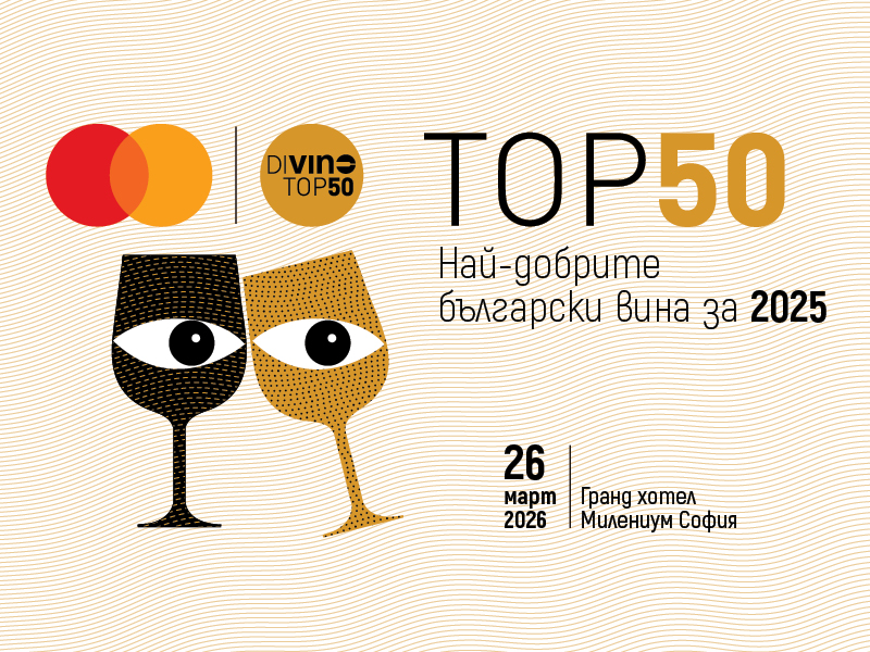 За пета поредна година на 26 март 2026 г., четвъртък, в Балната зала на столичния Гранд хотел Милениум ще се проведе отворена за любителите и професионалистите дегустация на TOP 50 – Най-добрите български вина за 2025 година, оценени и класирани от дегустационния екип на DiVino. А преди дегустацията, на едночасова празнична церемония ще бъдат обявени и наградени най-добрите вина в различните категории!