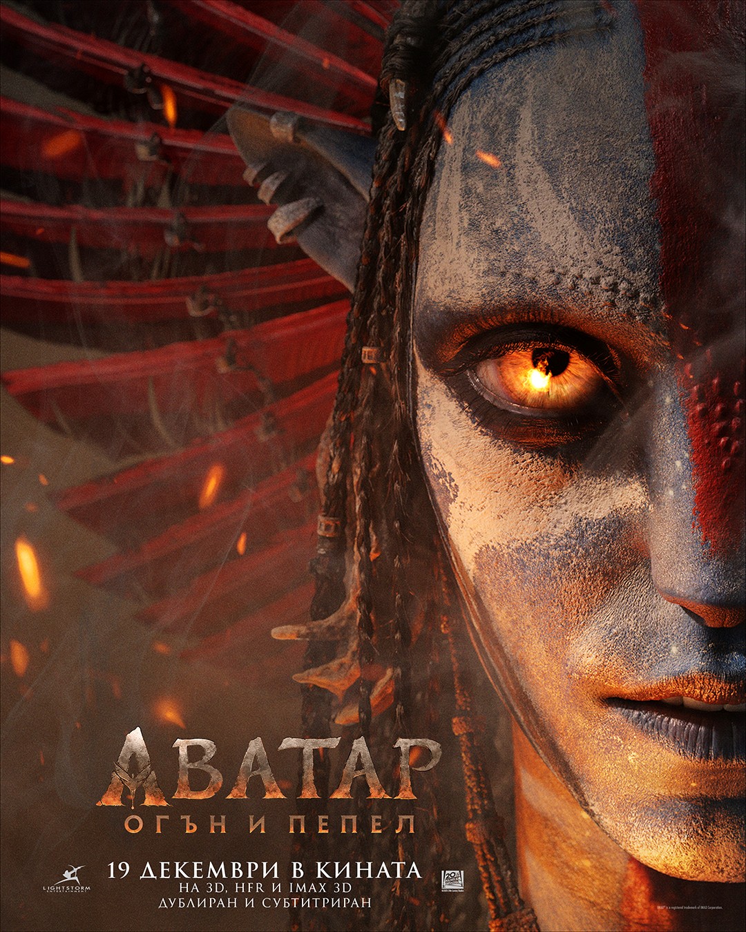 Аватар: Огън и пепел идва в кината от 19 декември на 2D, 3D, HFR, 4DX и IMAX.