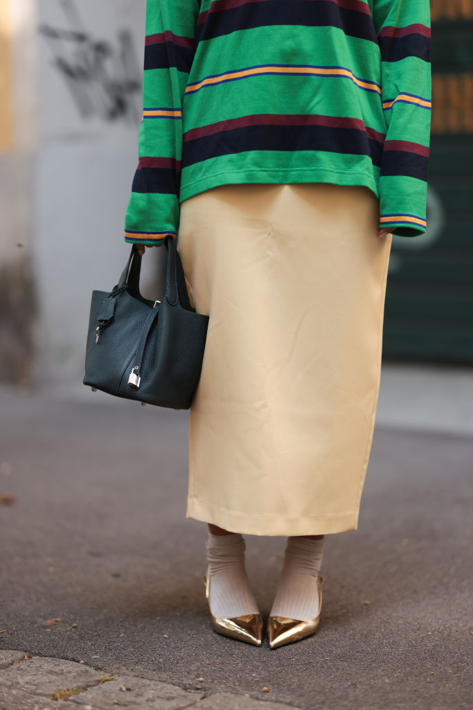 Хипервидимостта е един от факторите, допринасящи за скорошния бум на този иначе нежен цвят. Като оставим настрана червения килим, маслено жълтото бързо се превърна в основен елемент на подиума, забелязан в безброй пролетно – летни ревюта на 2025 г. – от прозрачните панталони с пеплум и прилепнали рокли на Alaïa, маслено-кафяви кожени чанти на Toteme, до вталените гащеризони и плисираните рокли до пода на Chanel.