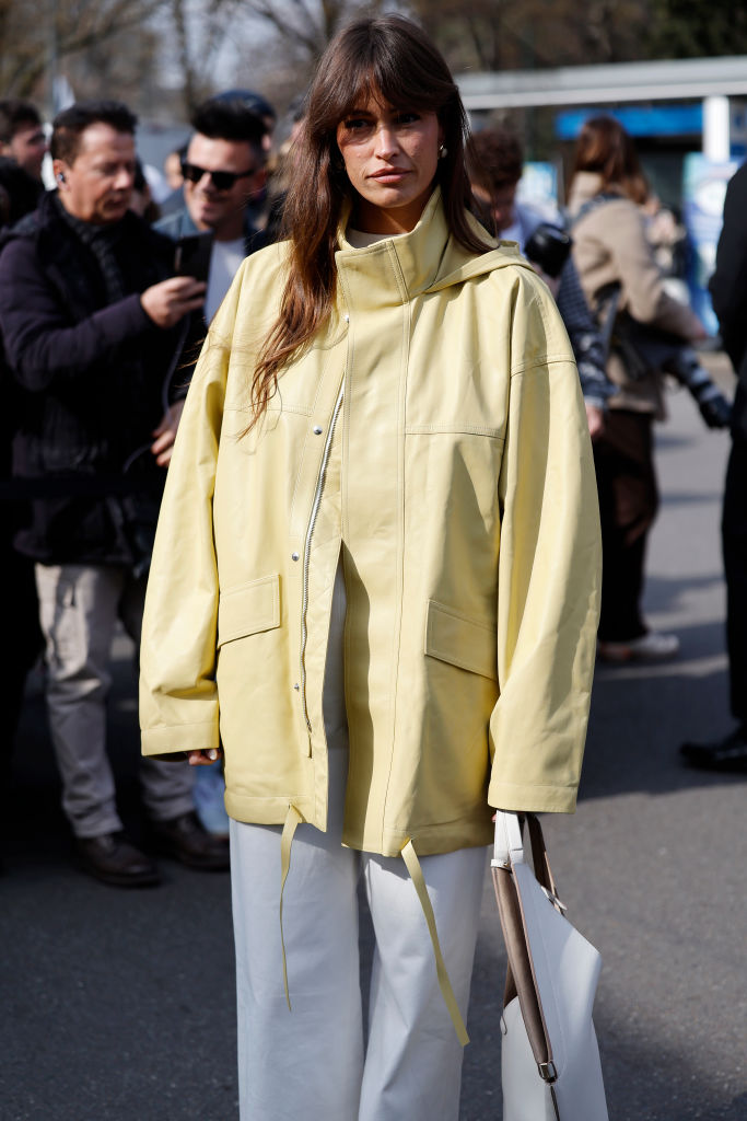 Ако решите да се потопите от глава до пети в маслено жълто най-добре е да си поиграете с текстурите, например: стилизирайте пухкава плетка и ефирни ленени панталони, а върху тях метнете удобно яке бомбър, завършете с кожена чанта с оплетени детайли.