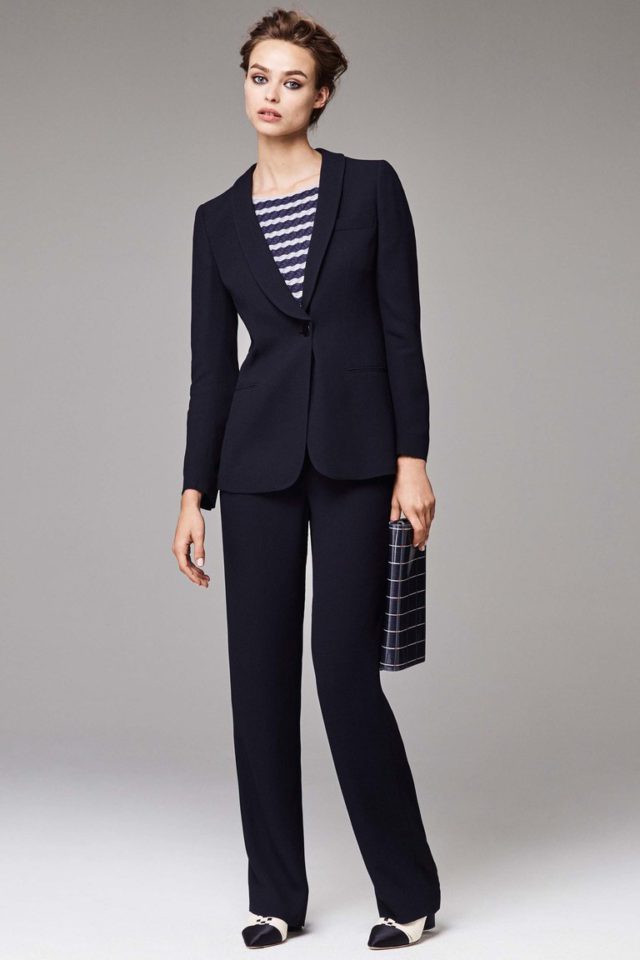 Giorgio Armani Resort 2017 припомня някои от последните стилове на марката, вдъхновени от мъжкото облекло, които изпълниха със сила и вдъхновение много жени през осемдесетте и деветдесетте години, та до днес. Колекцията включва гъвкави сака с подчертани рамене, разработени за Giorgio Armani Resort 2017 в различни леки материи – от лен и коприна до вискоза, и леки като перце плисирани панталони с удобни кройки и широки крачоли.