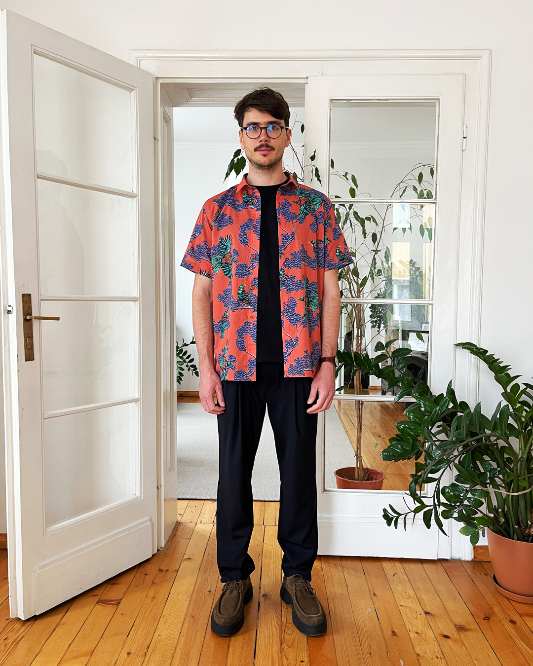 Принтовете, вдъхновени от текстурите на животински кожи и растителни елементи, деликатно размиват границите между човешкия и животински свят и хармонично допълват цветовата палитра, включваща земни и индустриални тонове като зелено, охра, горско синьо, синьо, черно. Колекцията съчетава функционалност и естетика и е отражение на мъжа, който иска да изглежда различно, без да прави компромис със себе си. Поговорихме си набързо с Гого за природата, българските мъже и какво трябва задължително да присъства в гардероба им през новия сезон, а той ни показа как най-добре да комбинираме дрехите от колекцията му.