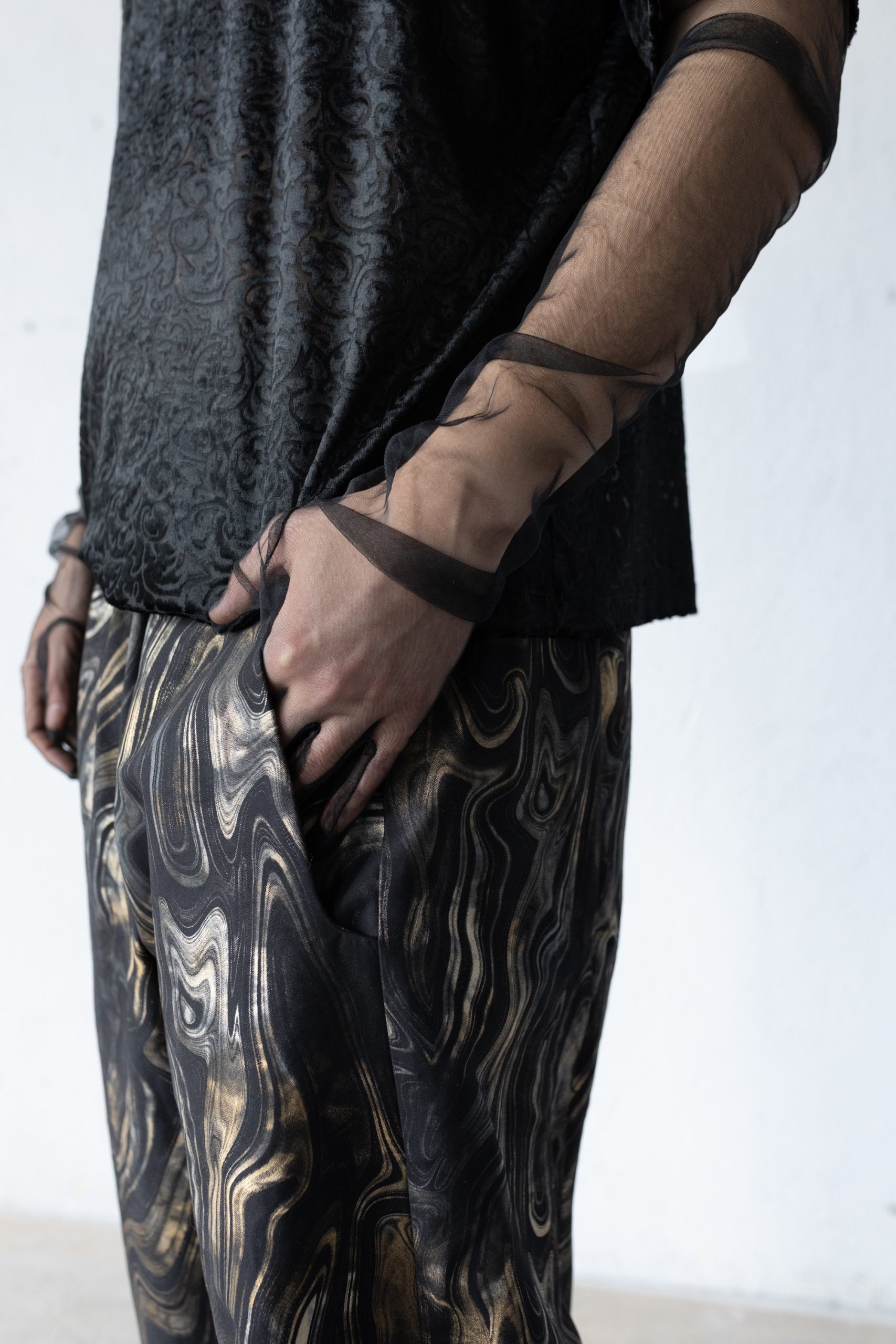 Колекцията съществува в напрежението между форма и хаос, дисциплина и свобода, елегантност и агресия.