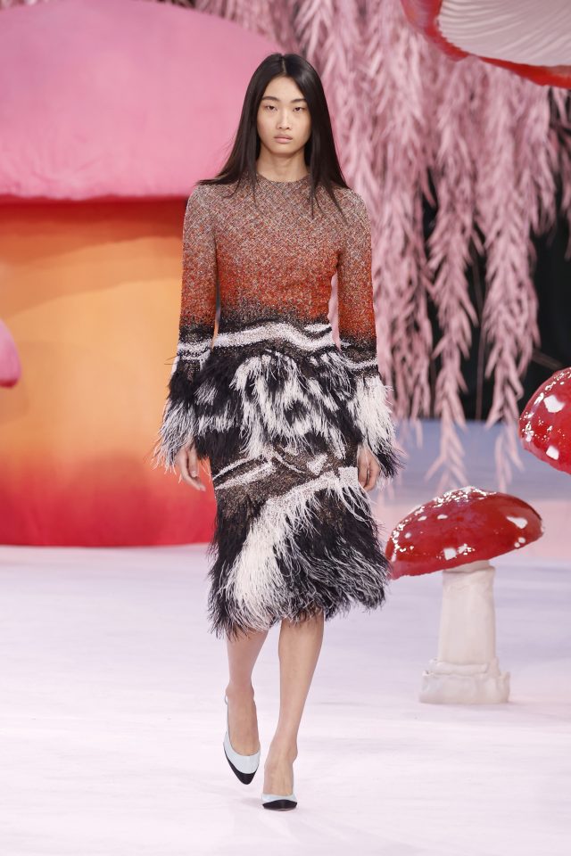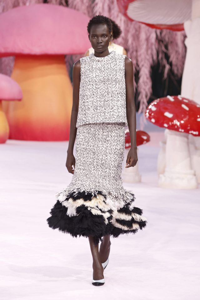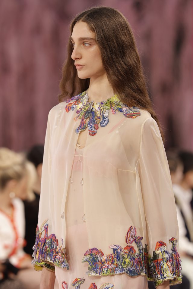 А днес в Chanel, когато Матю Блази представи първата си колекция висша мода за модната къща, и той се фокусира върху всичко въздушно, съвсем буквално. Той се обърна към природата, като птиците и тяхното оперение вдъхновиха дебюта му. Сценографията беше украсена с гъби в гигантски размери, а Никол Кидман, Дуа Липа, A$AP Rocky и Грейси Ейбрамс се събраха на първия ред в градината на Гран Пале, за да видят едно от най-дългоочакваните събития в модата: кардинална промяна спрямо последното му шоу в метрото. От шума на подземното придвижване към спокойствието на природно убежище.