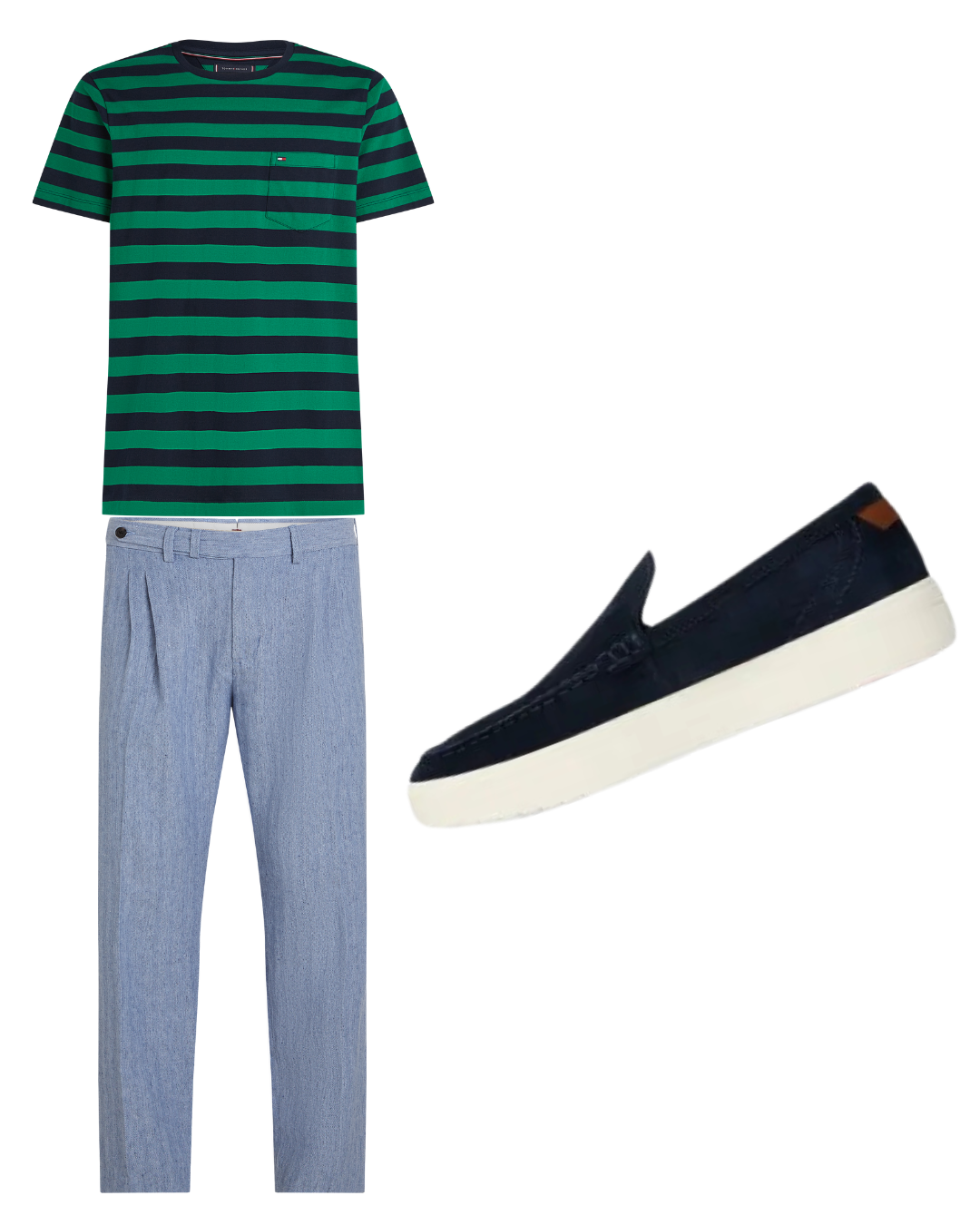 Тениска с контрастно райе, чино панталон и slip-on мокасини от плат. Точно толкова ти трябва, за да изглеждаш добре в ежедневието си. Една идея по-рафиниран от всички останали, но без претенцията, караща те да изглеждаш сякаш правиш твърде много.