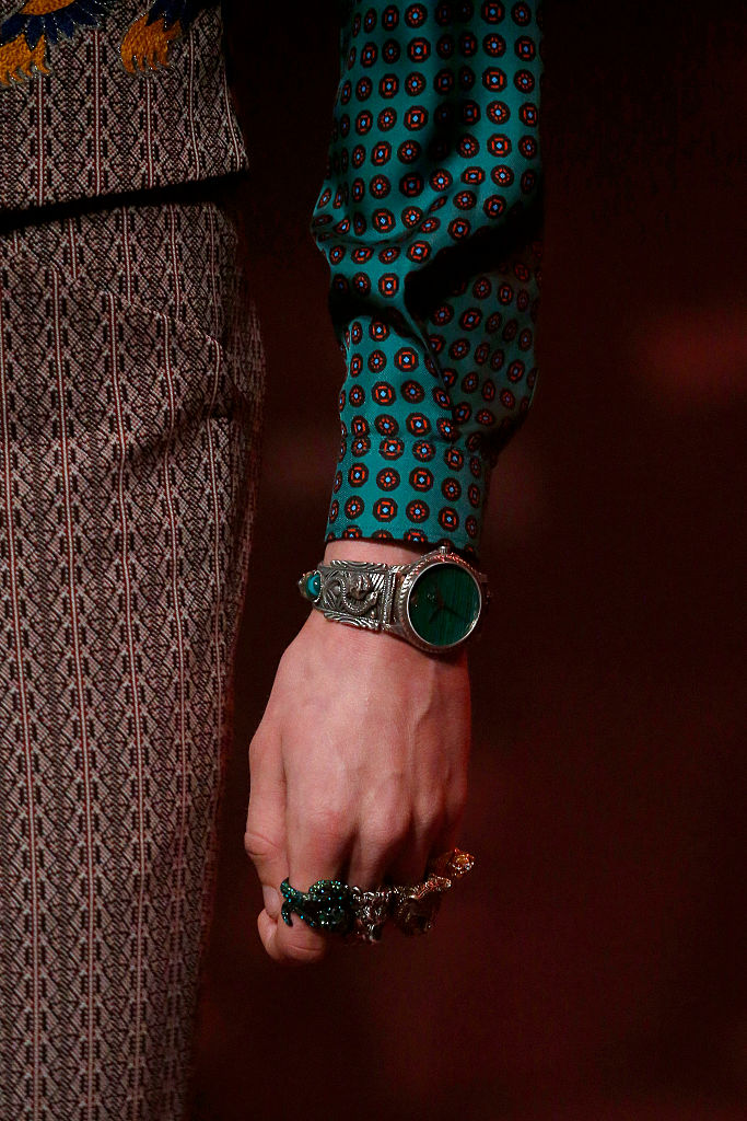 Основен похват за подправяне на визията както на подиума, така и сред street style иконите – натрупаните смели пръстени са дързък тласък срещу предразсъдъците за мъжкия стил. More is more.