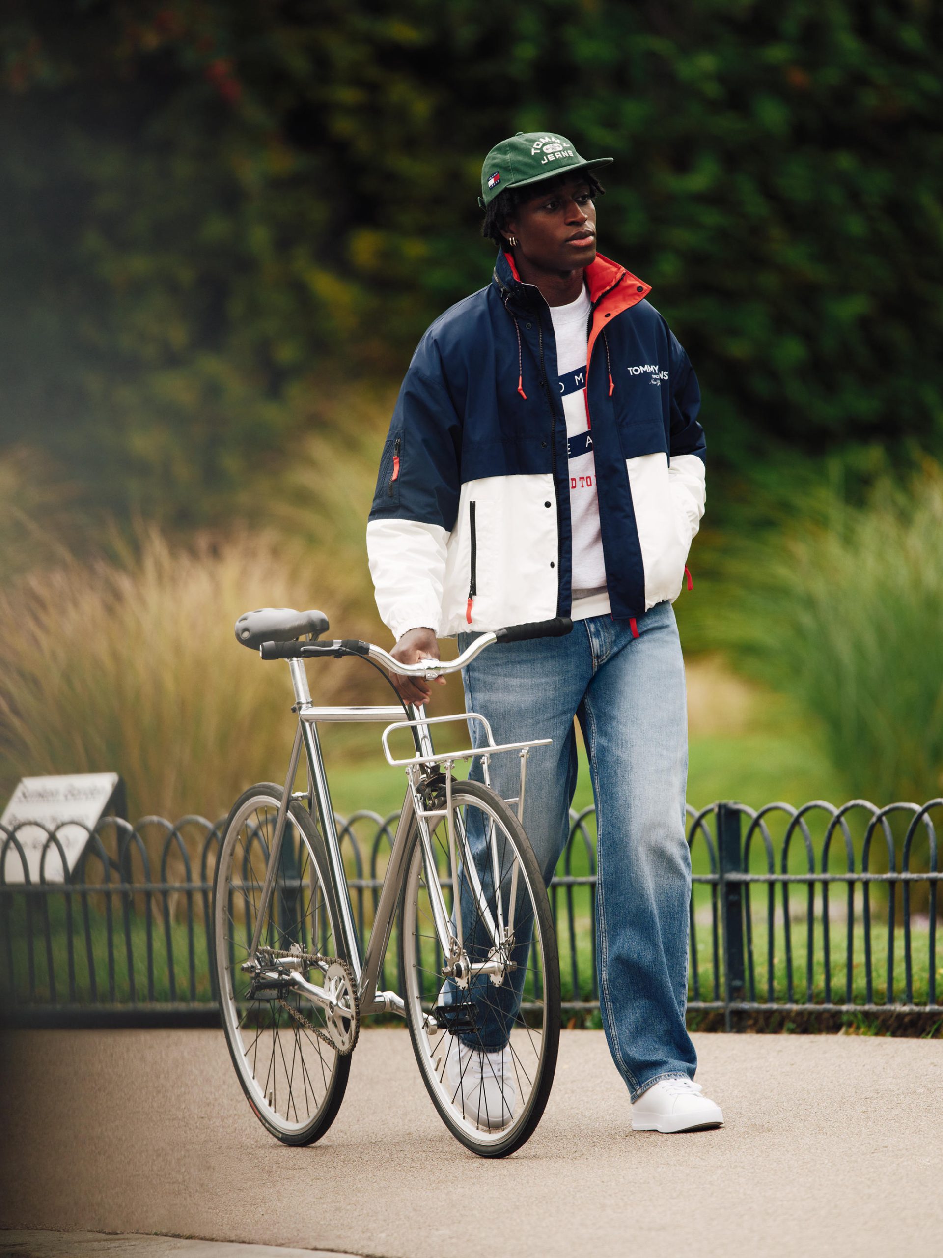 От Venice Beach в Лос Анджелис до West Village в Ню Йорк, предишните сезони проследяваха историята на Tommy Jeans през различни градове – сега линията пристига в легендарния лондонски квартал Shoreditch. Jang Won Young се завръща в кастинга с характерния си непринуден стил, към нея се присъединява смелата състезателка от F1 Academy Алба Ларсен в първата си кампания като посланик на марката. Те се появяват заедно с Кат Бърнс, музикалната сензация и глас от южен Лондон; Джеймс Лий, азиатско-американски творец, съчетаващ музика и мода; Франко Масини, аржентински актьор с модерен стил; и Гайаз Оками, канадски артист, базиран в Берлин с глобално влияние.