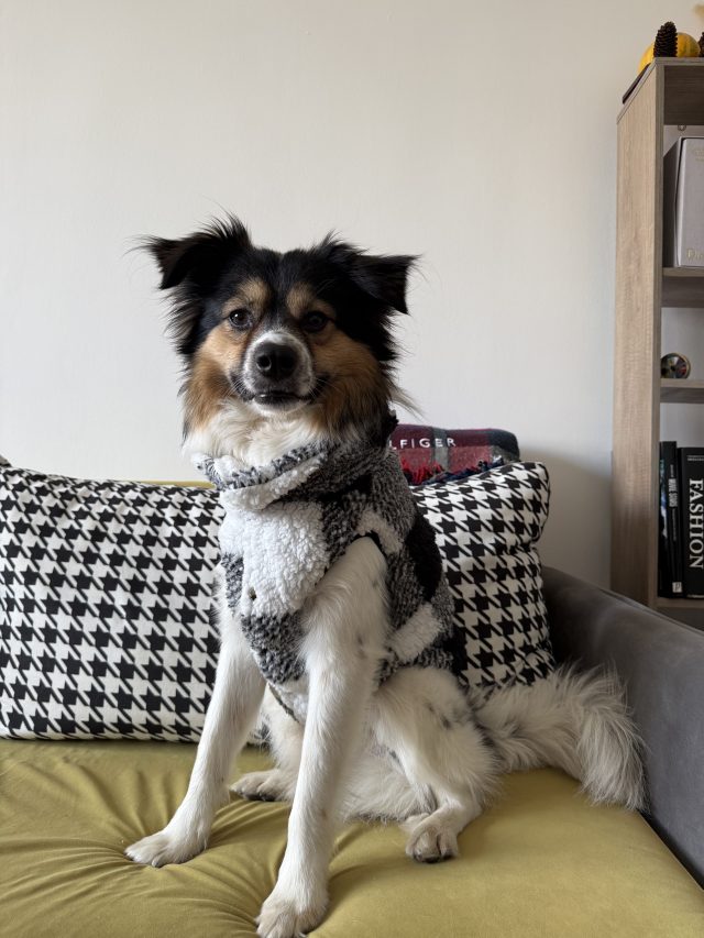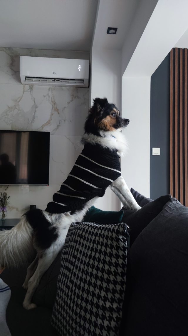 Черно-бял пуловер от кучешката серия на H&M – идеален за тичане вътре-вън и стратегическо наблюдение на съседските коне. Едно куче пазач трябва да бъде елегантно. Дори когато лае срещу кон.