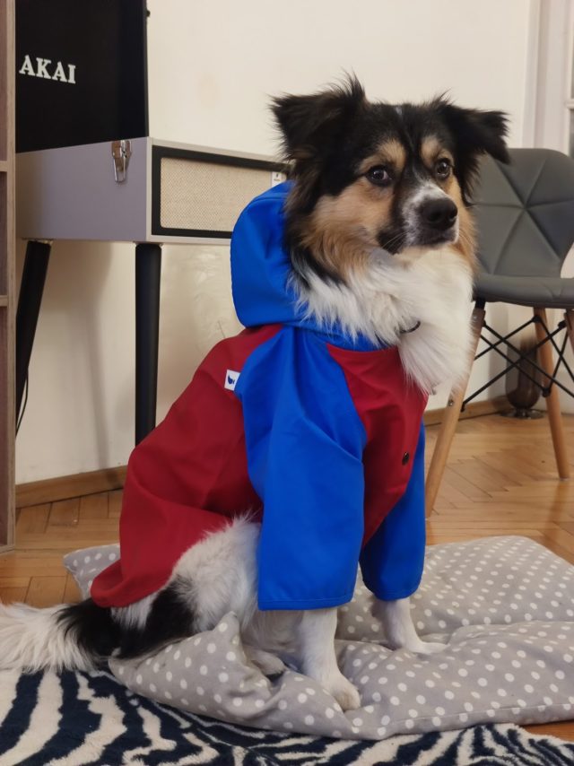 Функционалност на ниво, керемиден цвят, който контрастира страхотно с черно-бялото ми тяло и карамелената ми муцуна. Има качулка, но не я нося. Първо – в София не става чак толкова студено. Второ – с нея приличам на мравояд. А аз ухажвам дами, все пак. Имиджът е важен!
