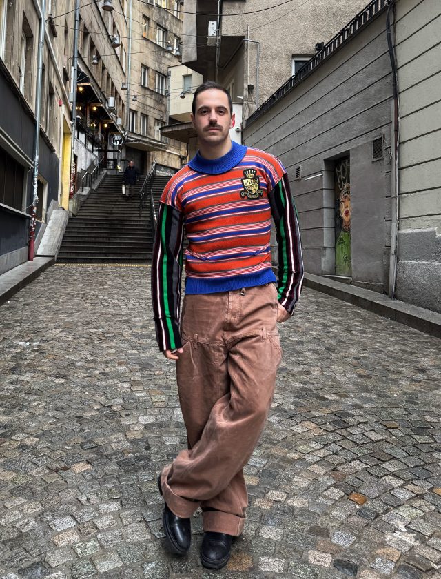 Дънките са oversize на Jacquemus, супер находка от Yaffi’s Archive, едно от любимите ми места в София за колекционерски и винтидж мъжки дрехи.
