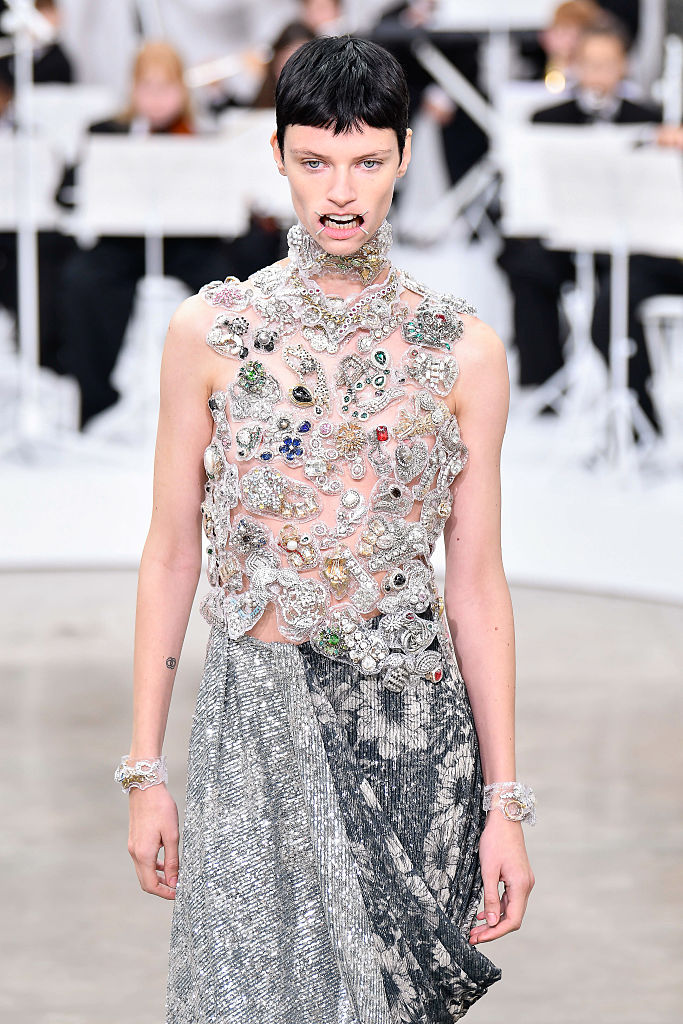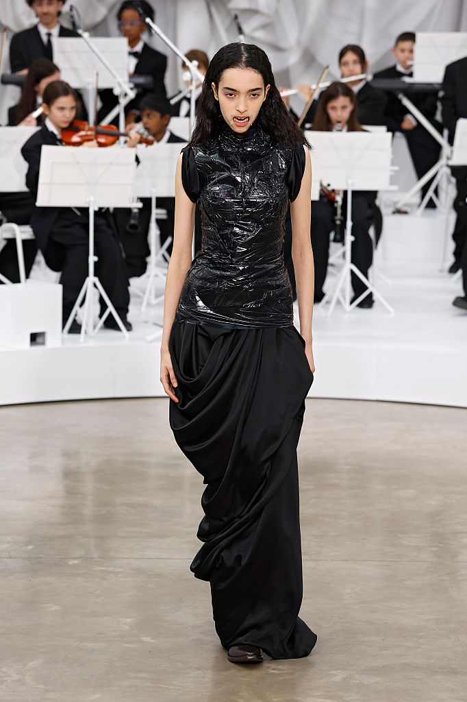 Biker якета и бели ризи с прибиращи се яки, носени със свободни панталони и сатенени рокли. Саката изглеждаха разсечени и сглобени отново, шевоветe – видими, а прозрачните слоеве проблясваха от аутфит в аутфит. Денимът беше изрязан с почти лазерна точност.