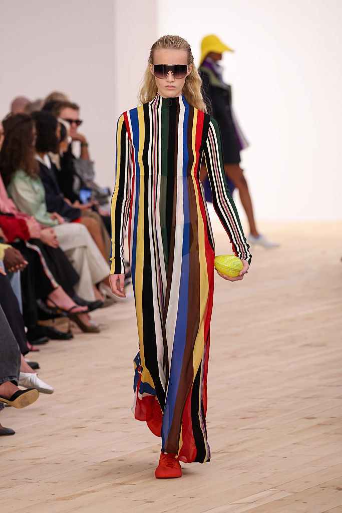 Пролет-лято 2026 на Loewe бе чиста радост, скроена в ярка гама, богати платове и визионерство. Мост между наследството и иновацията, ала без референции, които да надвикват очакването за бъдещето. Първият Loewe опит на Джак Макколоу и Лазаро Ернандес беше конструиран за сегашния моден момент, но несъмнено ориентиран към непреходното присъствие.