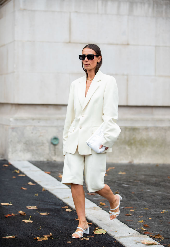 Често виждаме стилни дами в бермуди и блейзър, метнат лежерно върху раменете. Палитрата е най-вече пастелна – нежно розово и синьо, бежово, екрю, бяло, много светло сиво; материите са лен, разбира се, или памук. Тези с висока талия, придружени от сако с по-свободна кройка, са визия, която е едновременно неглижирана и шик, макар да изглежда като аутфит, който сме създали без капка усилие.