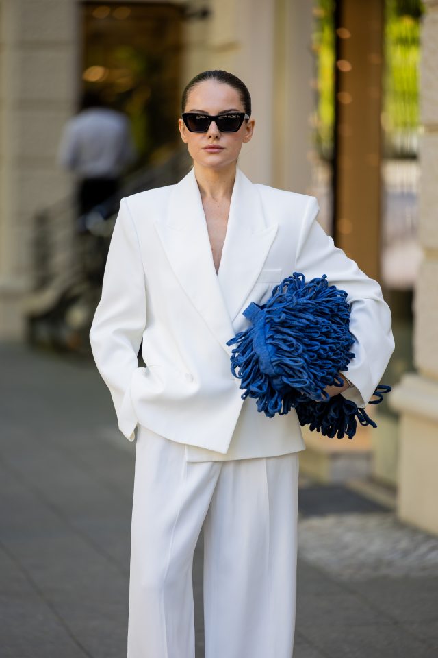 Не се ограничавайте само с каре, уестърн стил и „old money“ излъчване. Ralph Lauren е известен и със своите бляскави вдъхновени от Стария Холивуд. Класически смокинг с бяла копринена блуза е идеален за празничните тържества. Класа, класа, класа.