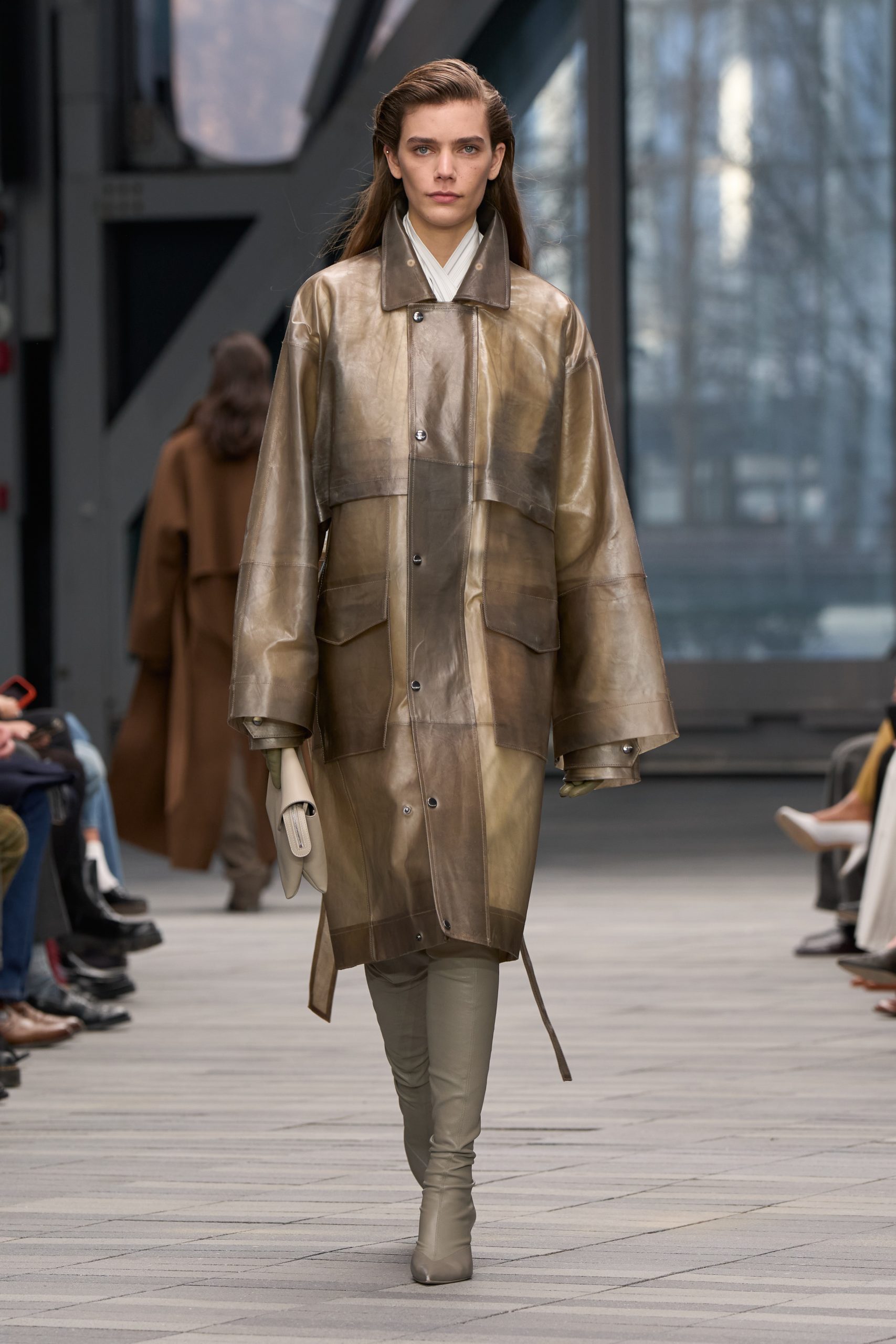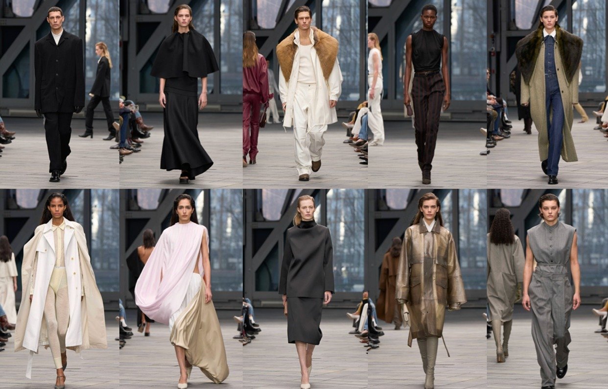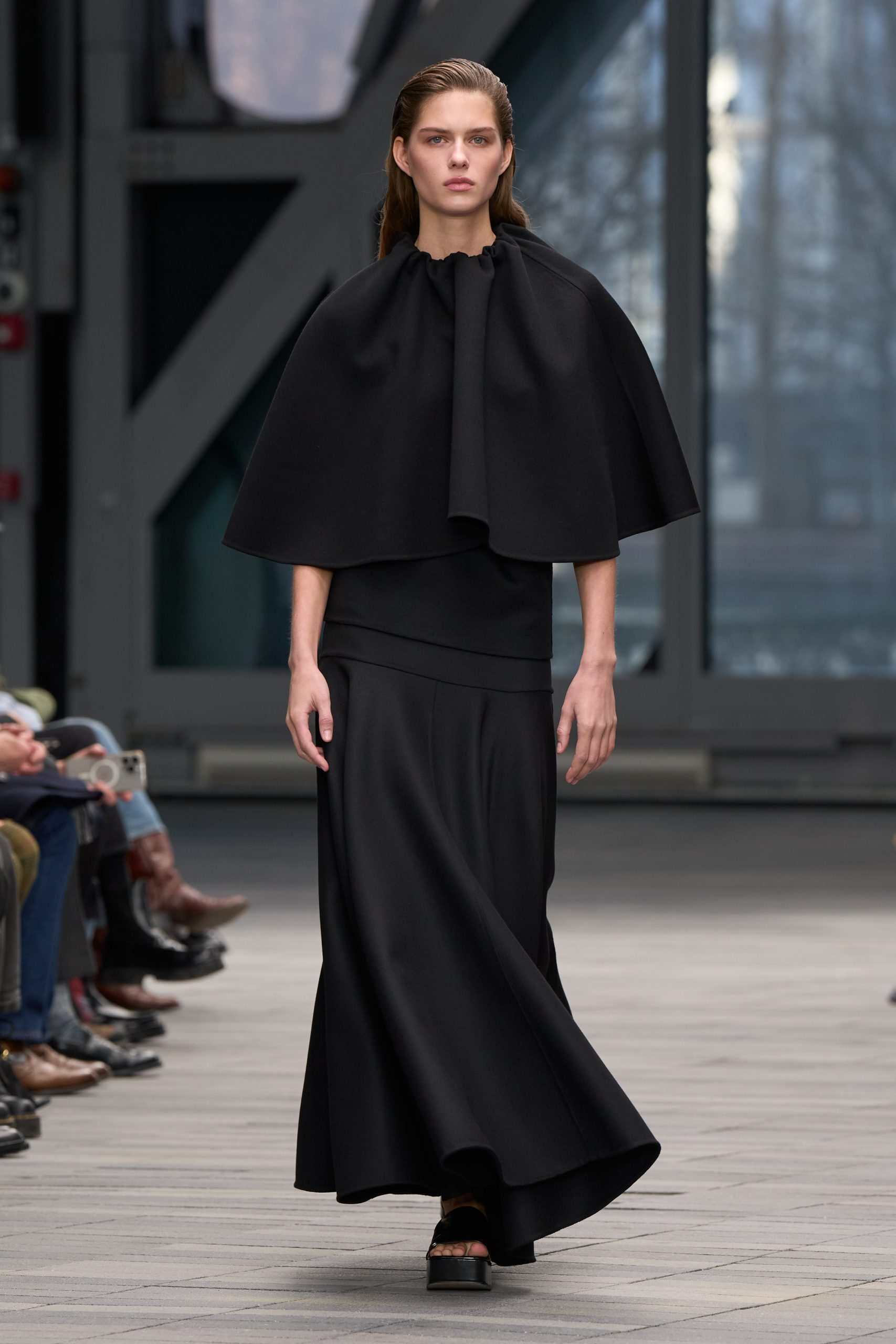 Силуетът е висок и издължен. Прецизната, вталена линия е прекъсната от изненадващи отворени гърбове и безръкавни акценти, които създават напрежение. Богато конструираните рокли контрастират с изчистени гърбове, разкриващи вътрешната структура. Белите яки изпъкват като графичен акцент, байкърските яки внасят суровост, а шърлинг яките еволюират в палта.