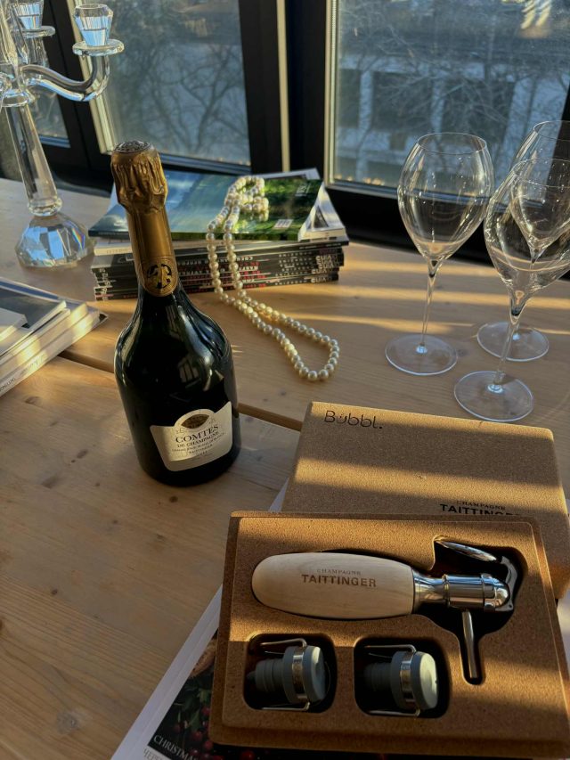 В последните работни дни преди празниците следобедните часове се усещат малко по-различни. Навън е хладно, но слънцето нахлува през прозорците и стопля както цветовете в пространството, така и настроението. Атмосферата е повече от подходяща за бутилка Taittinger от winebox.bg.
